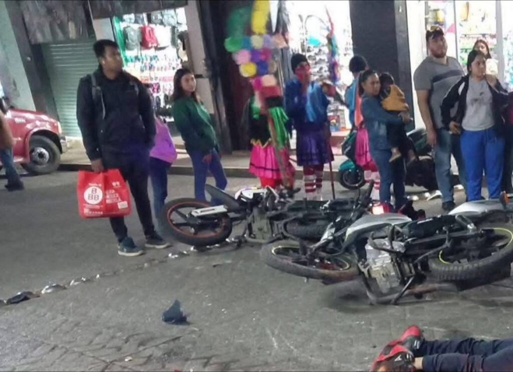 Ixhuatlán del Café, Ver.- La noche de este sábado se registró un accidente vial en el centro del municipio de Ixhuatlán del Café, donde dos motociclistas se vieron involucrados en un choque mientras circulaban por una de las principales vialidades de la zona.