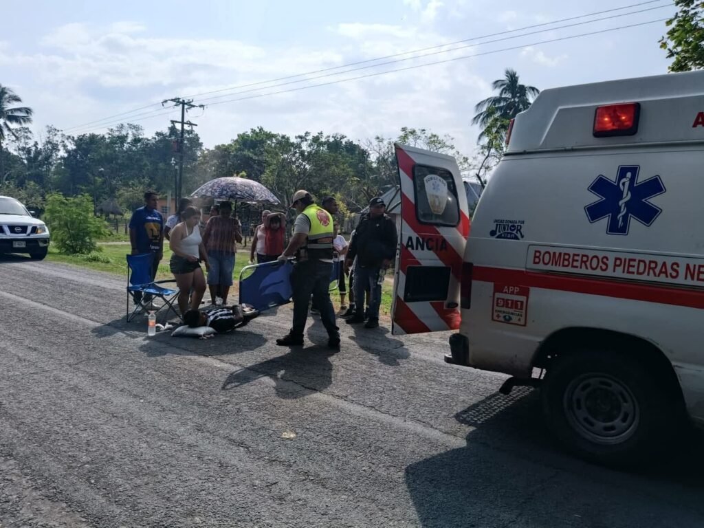 Un accidente se motocicleta en la carretera Piedras Negras- Ignacio de la Llave, a la altura de la comunidad de Cocuite, Tlalixcoyan, deja a una pareja lesionada, son del Puerto de Veracruz.