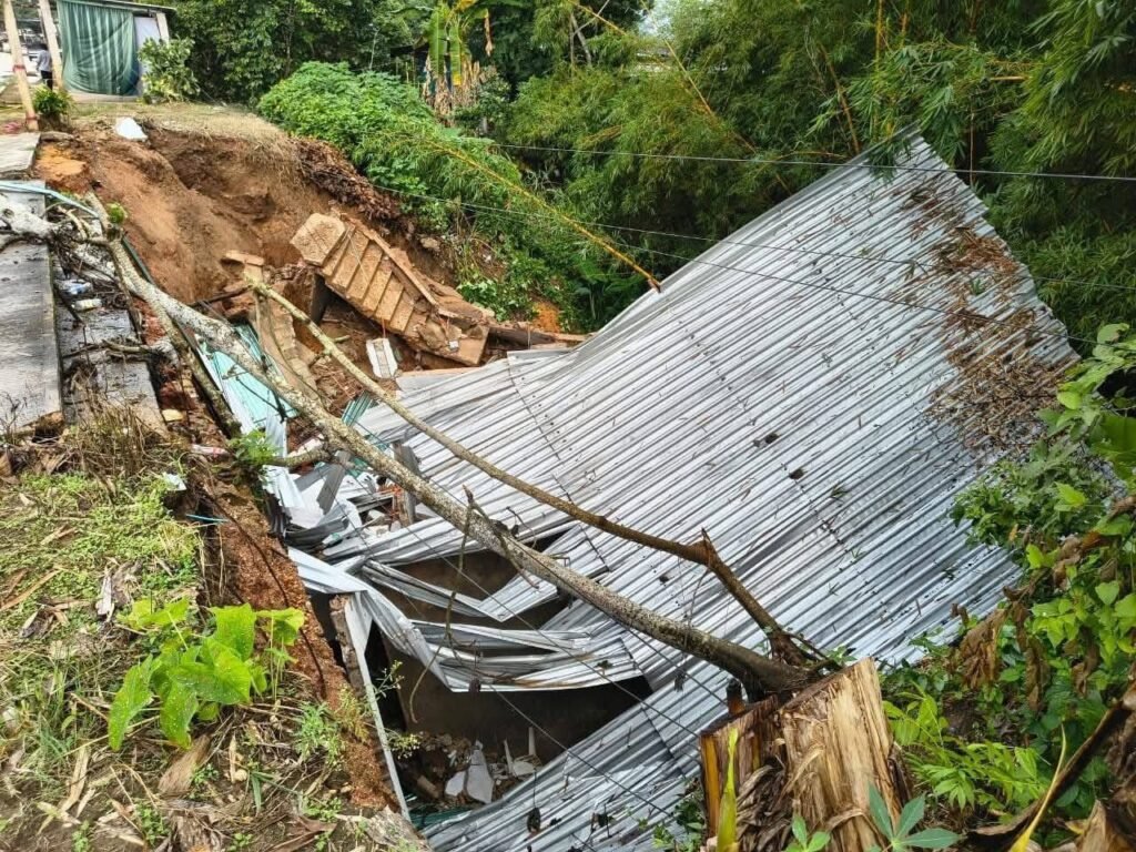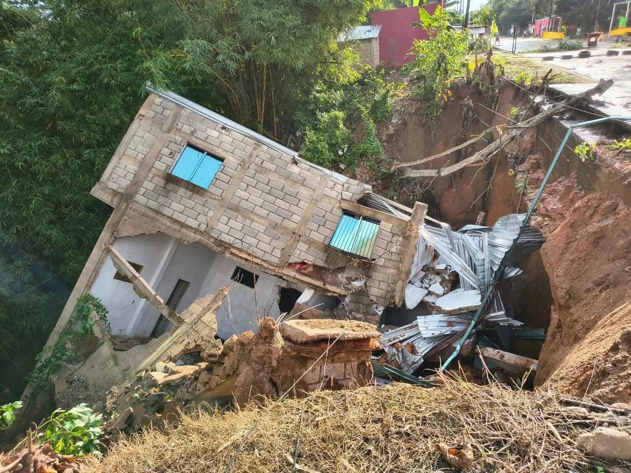 El incidente ocurrió durante las últimas horas, cuando el reblandecimiento del suelo ocasionó el colapso de la tierra, generando un hundimiento de gran magnitud que afectó directamente la estructura del inmueble.