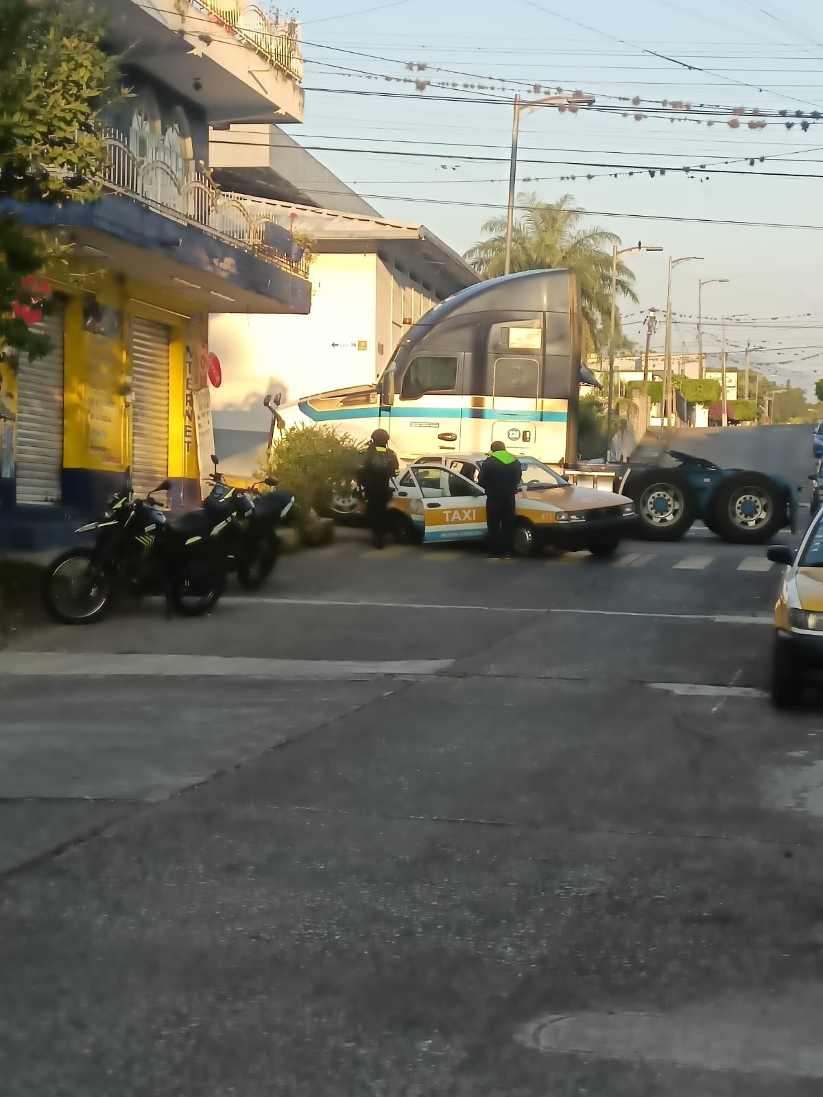 TRÁILER IMPACTA A TAXI EN CRUCE DE LA COLONIA SAN JOSÉ, EN CÓRDOBA; HAY UN LESIONADO