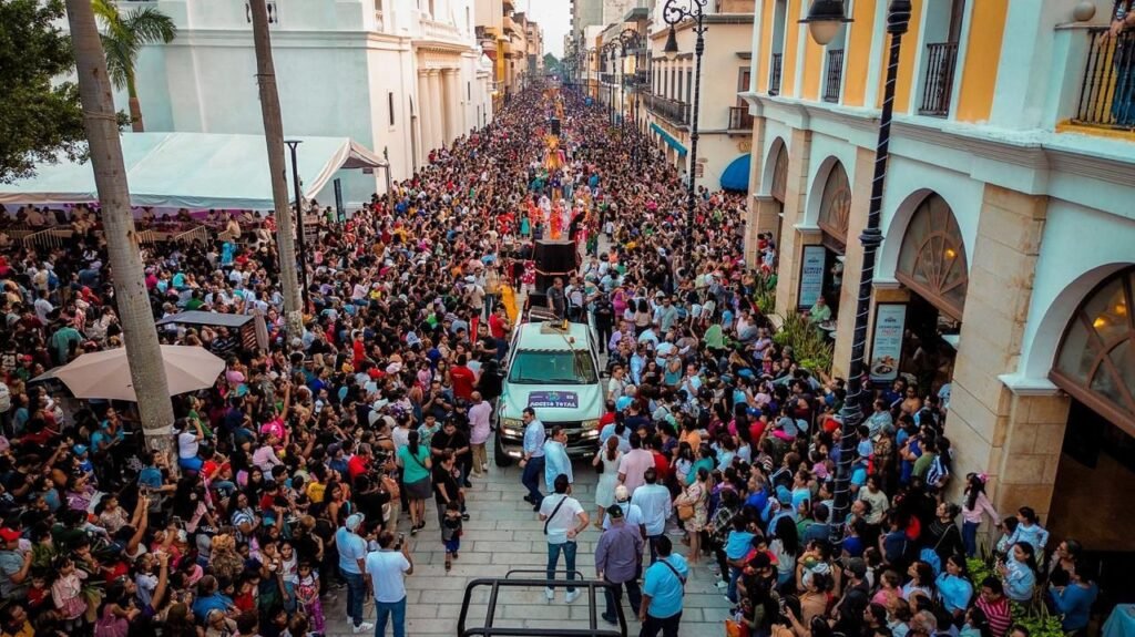 Miles de personas se congregaron para celebrar el Día de los Reyes Magos en el Zócalo de la Heroica Ciudad de Veracruz, en un ambiente festivo que llenó de ilusión a niñas y niños, con un colorido desfile y la tradicional partida de la Rosca, que en esta ocasión midió 272 metros lineales, fortaleciendo las tradiciones y el sentido de identidad de la comunidad.