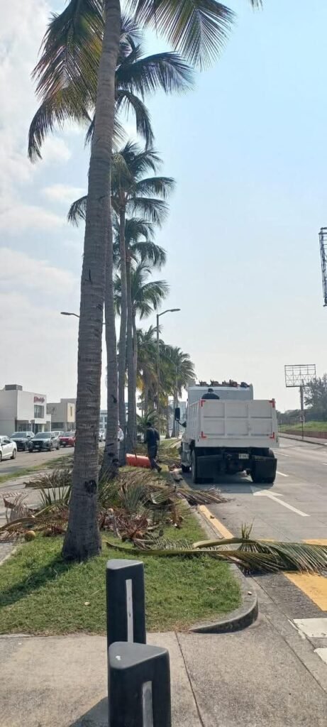 Se realizó la poda y el retiro de ramas de 3 palmeras que estuvieron a punto de caer.