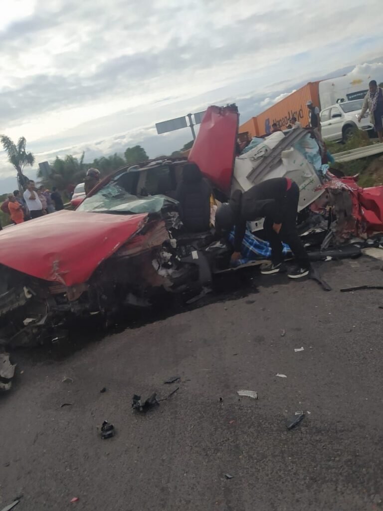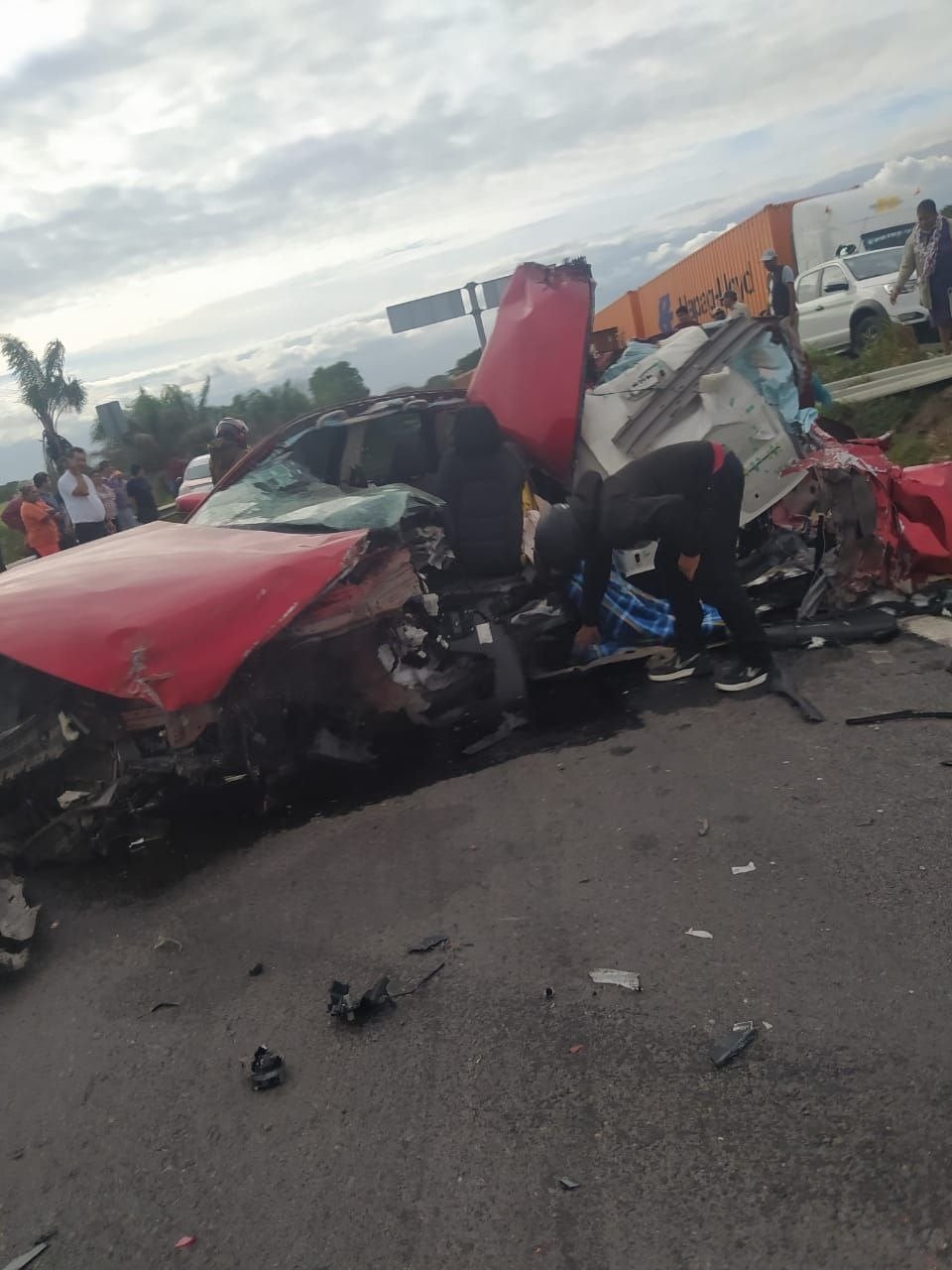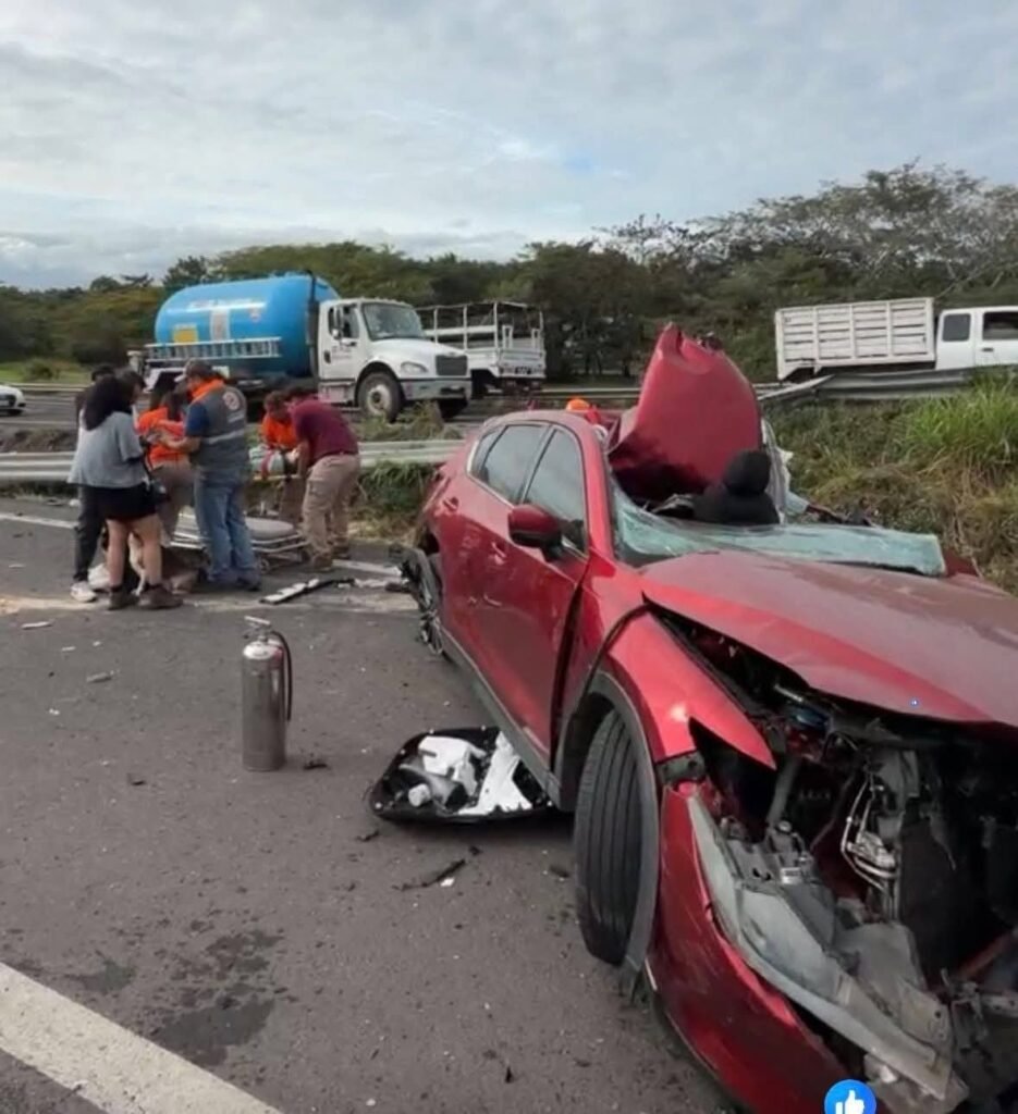 La Antigua, Ver.-Un aparatoso accidente se registró la tarde de este martes sobre el libramiento Xalapa–Cardel, a la altura de la entrada a Cardel, luego de que un contenedor se desprendiera de un tráiler e impactara de frente a un vehículo particular que circulaba con dirección al puerto de Veracruz.
