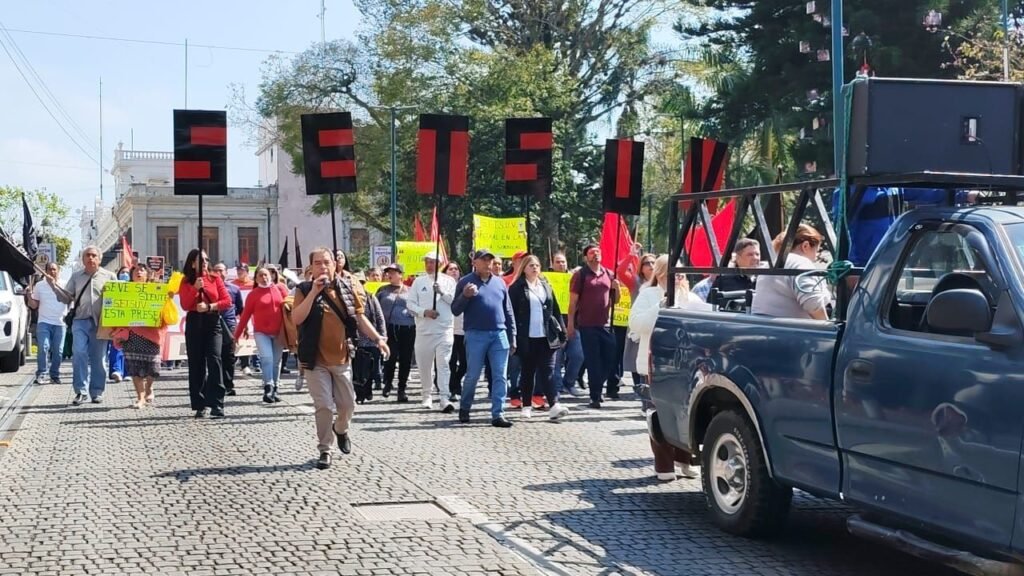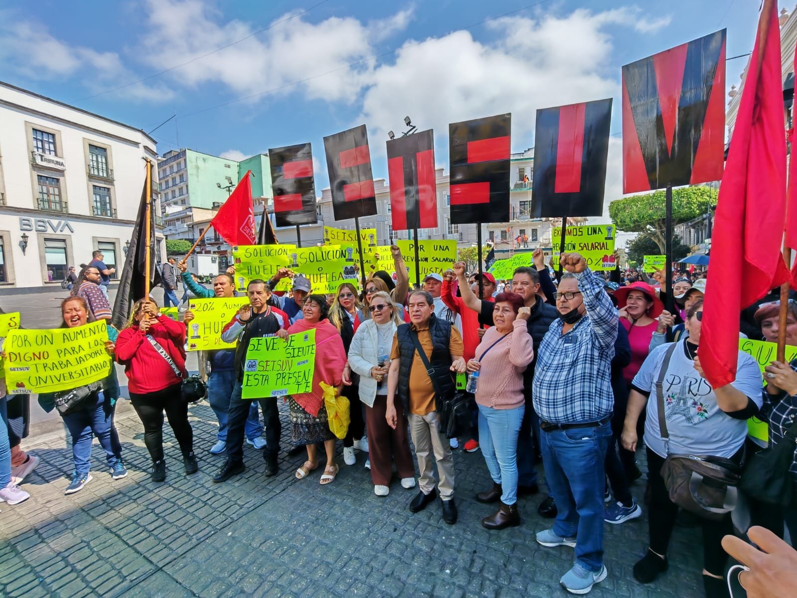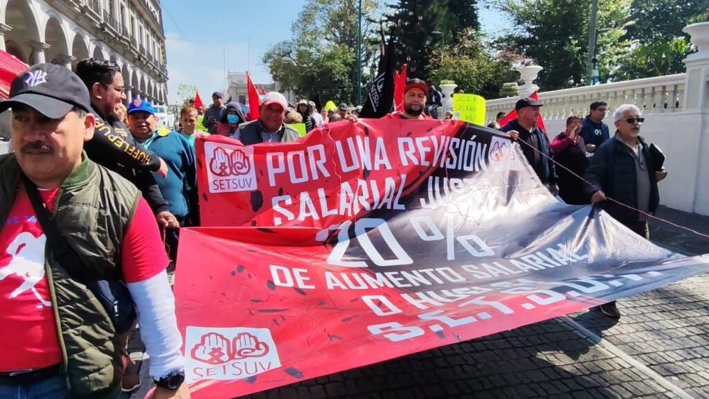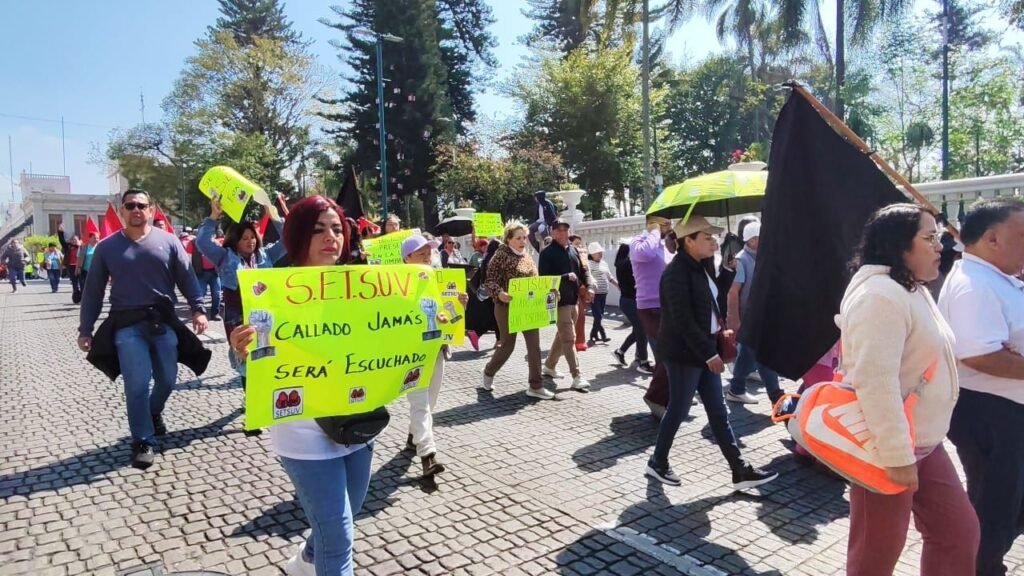 Xalapa, Ver., Luego de que se acordara prorrogar las negociaciones entre el Sindicato Estatal de Trabajadores al Servicio de la Universidad Veracruzana (Setsuv) y la Universidad Veracruzana (UV), este miércoles los agremiados a esa organización sindical marcharon por diversas calles de la capital veracruzana, para denunciar que más de 3 mil 500 trabajadores ganan menos del salario mínimo.
