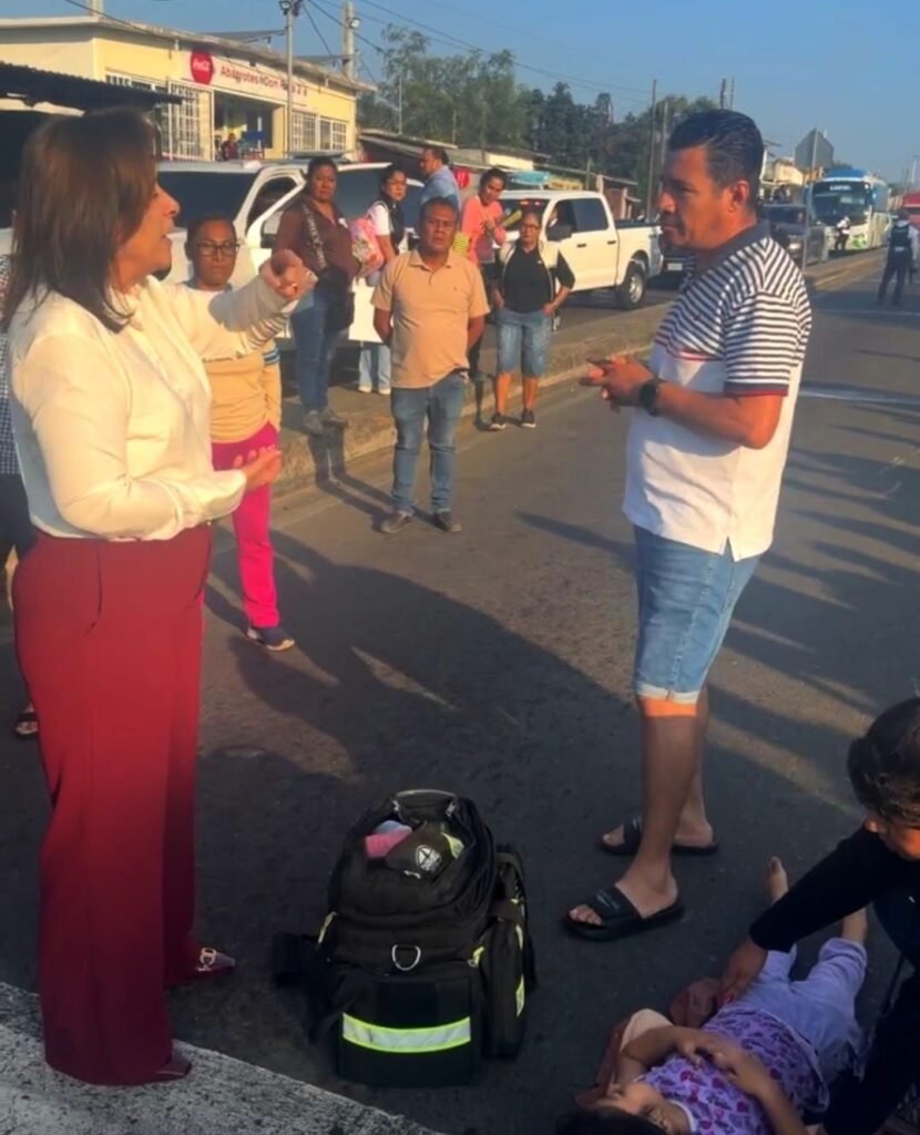 La gobernadora de Veracruz, Rocío Nahle García atendió personalmente un accidente con madre e hija lesionadas por un accidente de motocicleta en la carretera federal 150 Boca del Río-La Tinaja a la altura de Paso del Toro.
