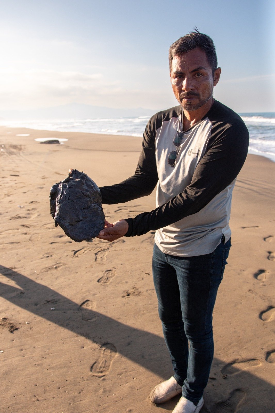 El impacto económico también es evidente en las zonas de Playa Carrizal y la Barra de Sontecomapan. En Carrizal, las cooperativas pesqueras de “El Real” y la “Barra” reportan la pérdida de equipos de trabajo tras documentarse daños severos en las redes de pesca debido a manchas de crudo de hasta un kilómetro de longitud. Lo más alarmante en esta área es que, debido al efecto de las mareas, gran parte del material ha quedado cubierto por la arena, ocultando una contaminación latente que dificulta las labores de limpieza superficial.