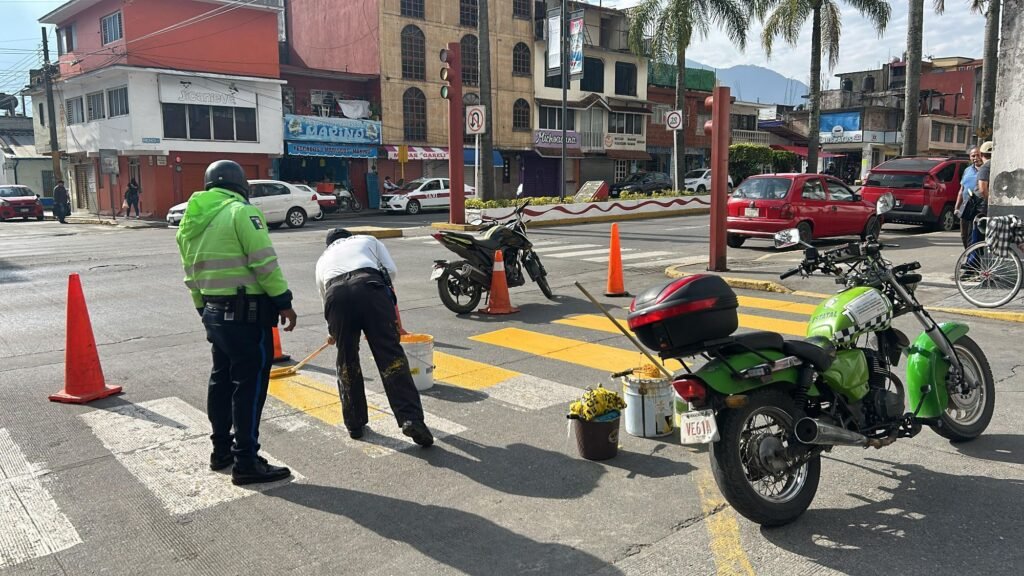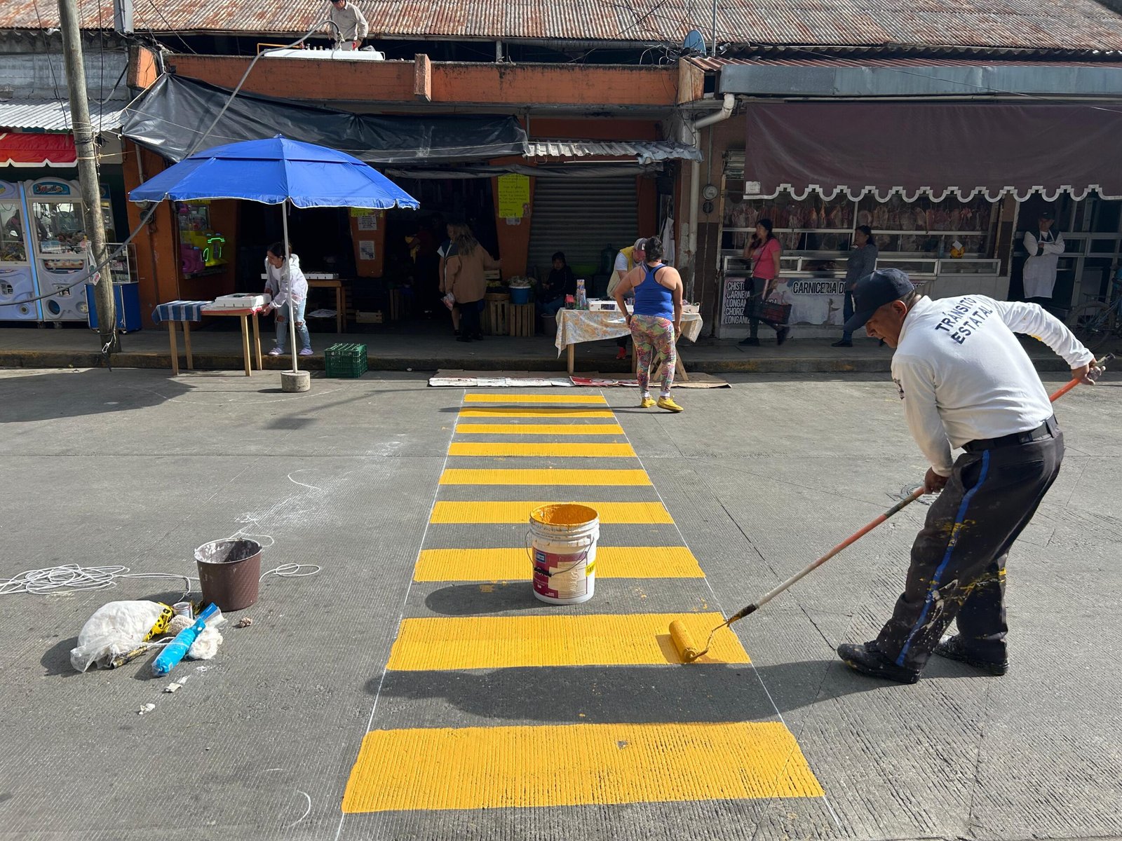 Desde temprana hora de este viernes una cuadrilla de elementos viales se dieron a la tarea de pintar los pasos peatonales en las intersecciones del citado zoco.