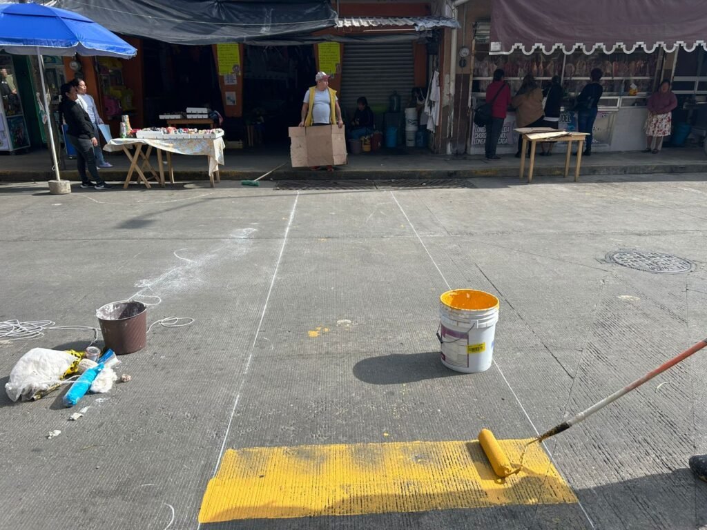 Río Blanco, Veracruz. – El personal de la delegación de tránsito de esta ciudad realizó trabajos de balizamiento en la periferia del mercado municipal Modesto Escalona, para seguridad de los peatones y automovilistas.
